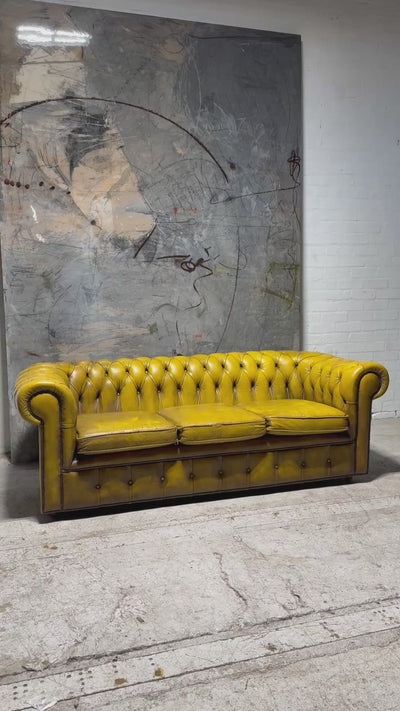 This is a very striking Golden Tan leather chesterfield sofa in great condition.
