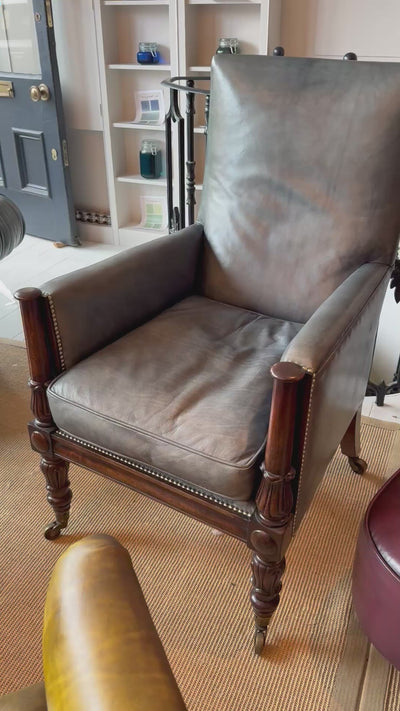 The piece is attributed to Gillows of Lancaster and has been fully restored into our raw leathers and hand dyed in our Deep Ocean blue.