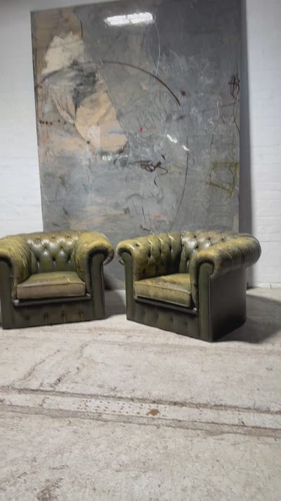 This is a really lovely pair of MidC vintage leather chesterfield club chairs that will nicely restore as required including seat leathers.