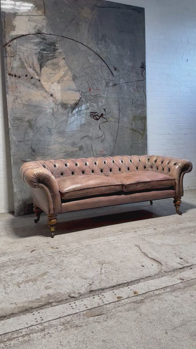 This really is a beautiful 19thC Chesterfield sofa which has been previously restored into beautifully hand dyed leathers. There is a great blend of colours and patina on this piece.